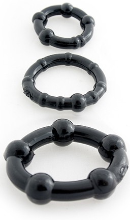 Комплект насадок GET HARD BLACK состоящий из 3 колец разных диаметров и различной структуры. Изготовлены из эластичного латекса.