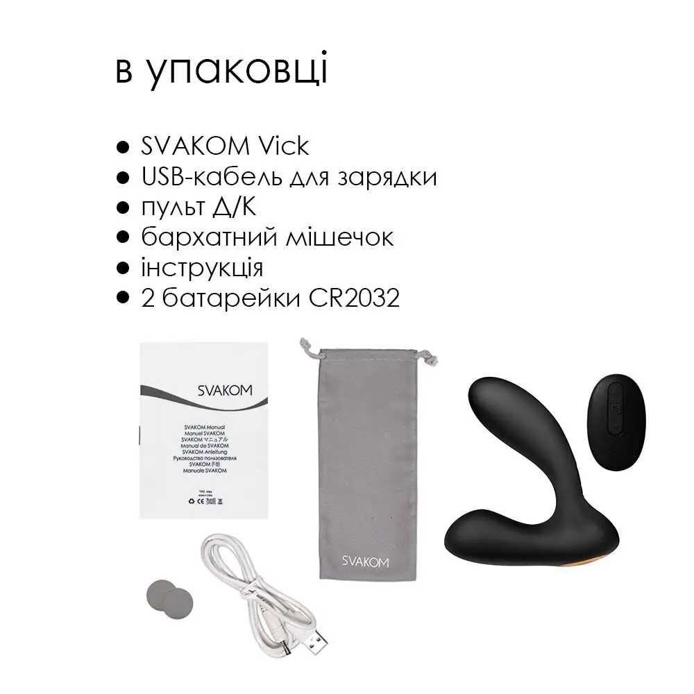Массажер простаты Svakom Vick Black и вибратор G-Spot с дистанционным управлением - идеальный инструмент для удовольствия как для мужчин, так и для женщин! Эта изящная и стильная игрушка предназначена для интенсивной стимуляции как предстательной железы, так и точки G, вызывая мощные оргазмы, от которых у вас перехватит дыхание.