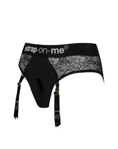 Кружевные трусы для страпона с подвязками для чулок Strap-On-Me DIVA HARNESS - XL