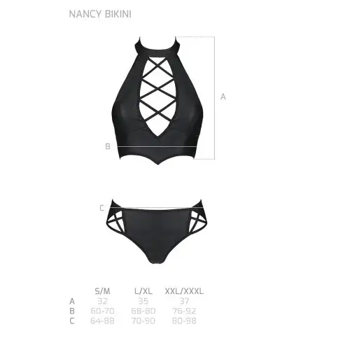Ищете сексуальный и стильный комплект нижнего белья, который позволит вам чувствовать себя уверенно и неотразимой? Не ищите ничего, кроме черного бикини Nancy L/XL - Passion, потрясающего комплекта из бюстгальтера и трусиков из эко-кожи, который обязательно привлечет внимание.
