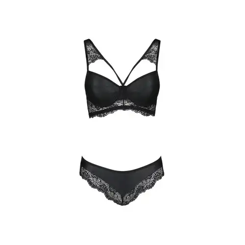 Комплект из эко-кожи с кружевом Loona Set black XXL/XXXL - Passion, бра и трусики
