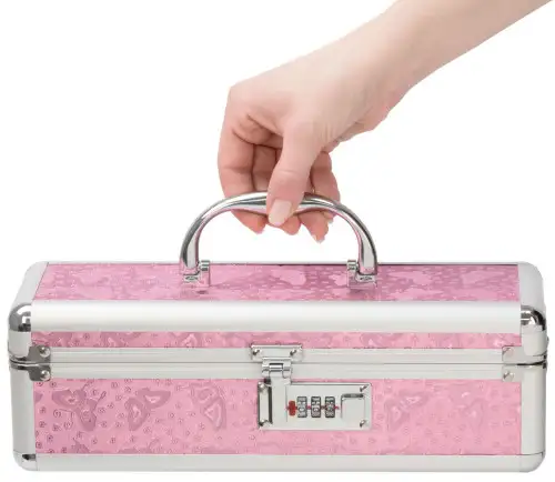 Чехол для вибратора Powerbullet Lockable Pink с кодовым замком также невероятно незаметен. Снаружи он выглядит как обычная косметичка или дорожная сумка, так что никто не заподозрит, что внутри, если не знает, что ищет.