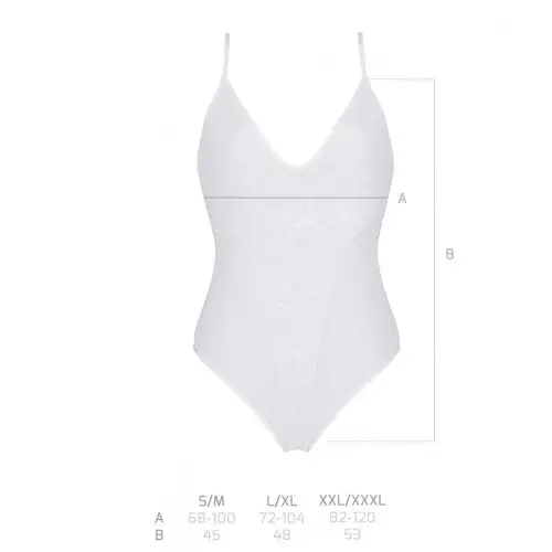 Белое боди Passion Ursula станет прекрасным дополнением к вашей коллекции нижнего белья. Эта потрясающая модель с замысловатыми кружевными деталями и открытой промежностью делает ее одновременно сексуальной и удобной. Корпус доступен в размерах L/XL, что обеспечивает идеальную посадку для большинства типов телосложения.