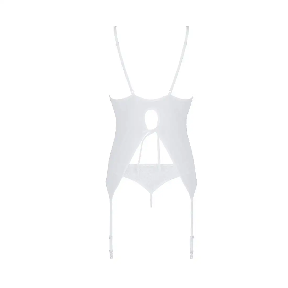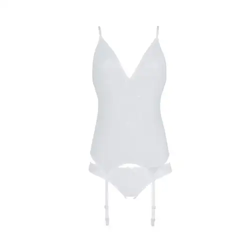 Корсет с пажами, трусики с ажурным декором и открытым шагом Ursula Corset white L/XL — Passion