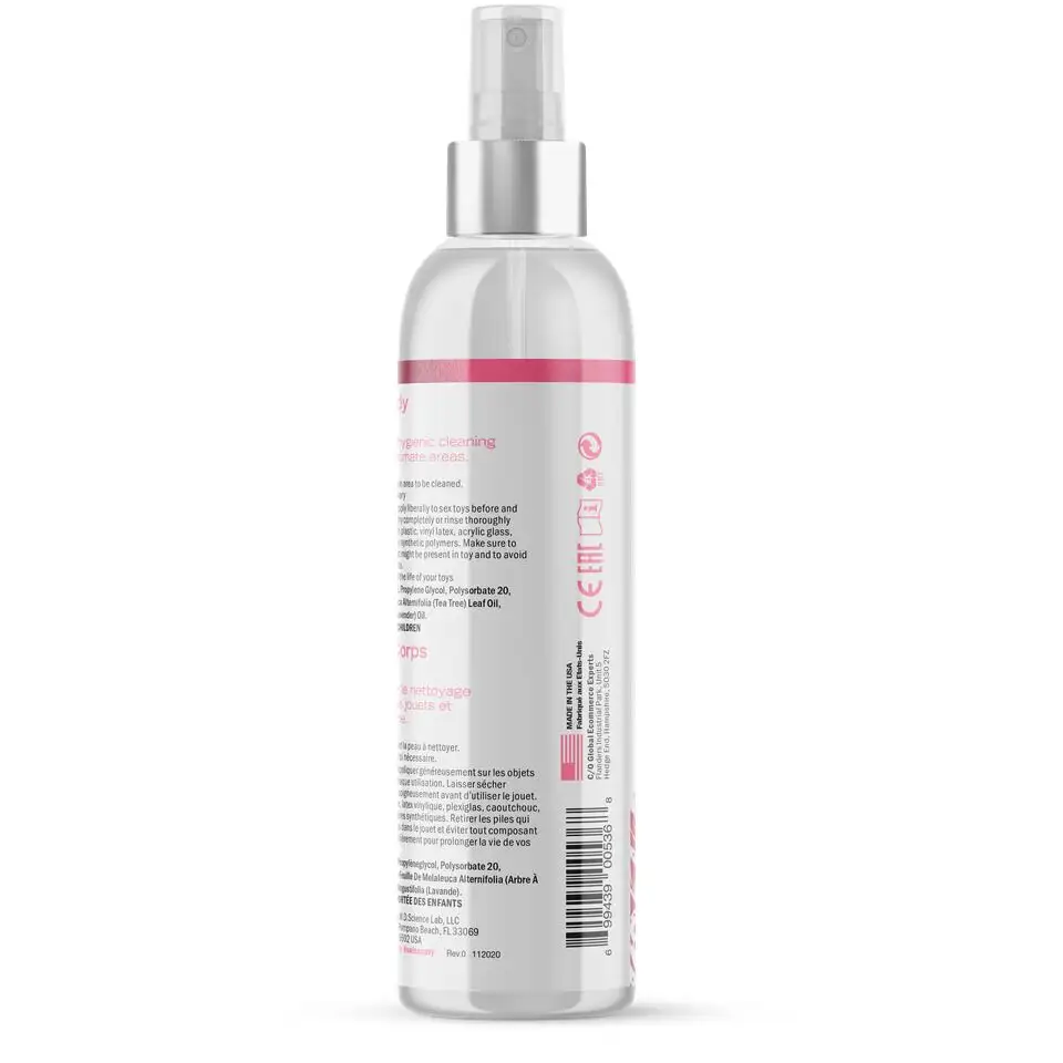 Изготовленное из высококачественных ингредиентов, это очищающее средство для игрушек и тела бережно, но эффективно очищает все типы секс-игрушек, включая силикон, резину, латекс, стекло, металл или пластик. Его также безопасно использовать на всех частях тела, включая половые органы.