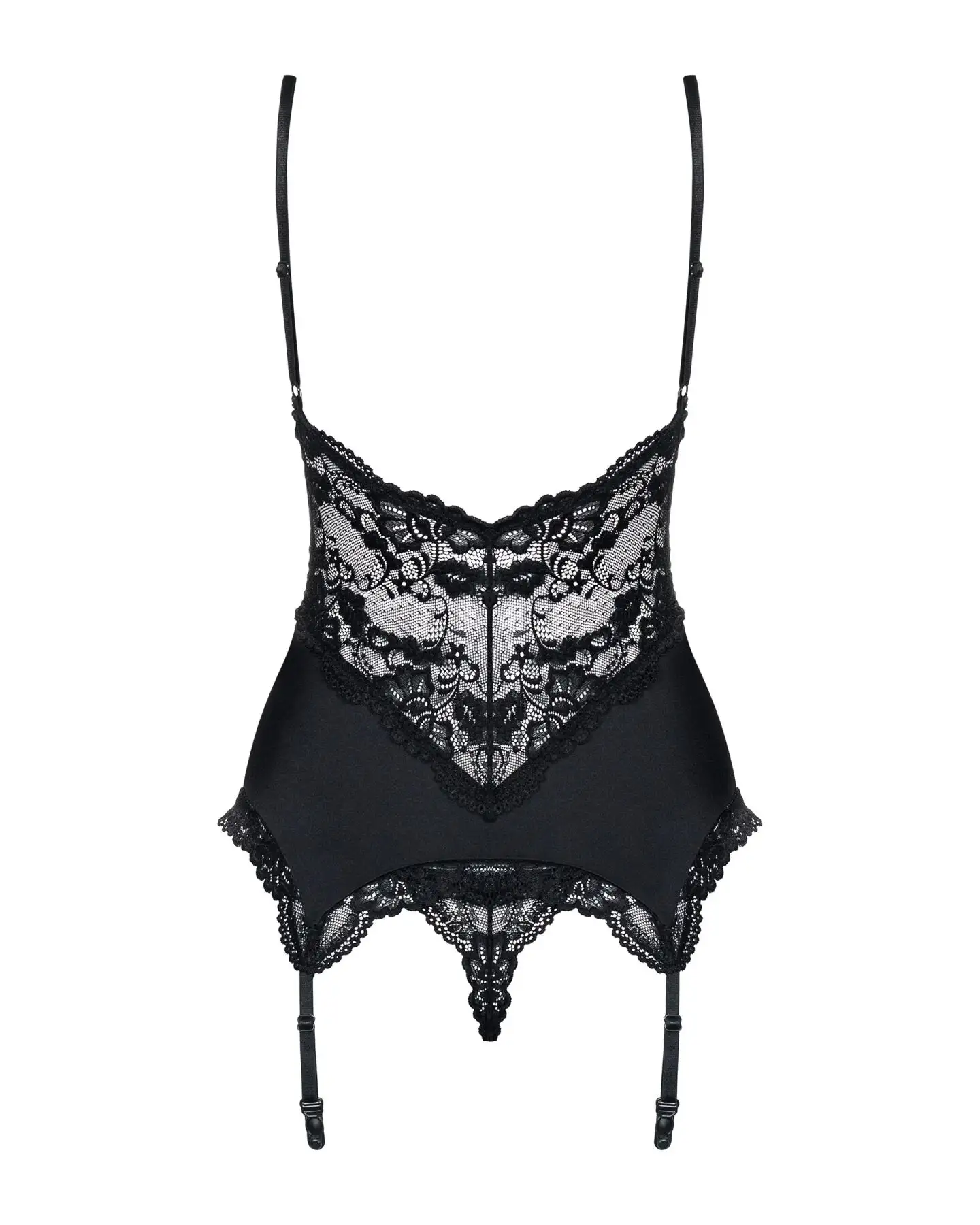 Сатиновый кружевной корсет Obsessive 810-COR-1 babydoll & thong S/M, черный, корсет, танга