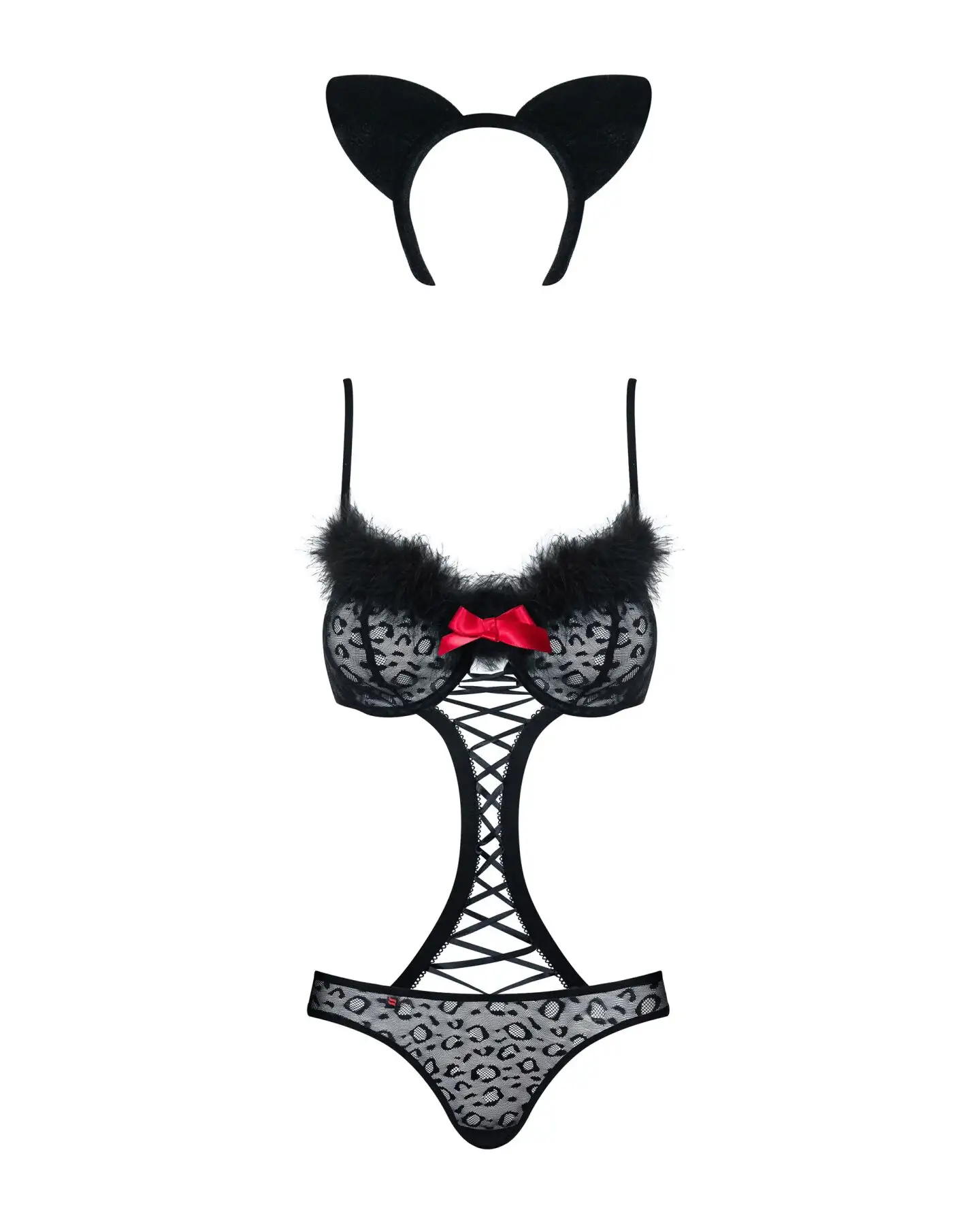 Эротический костюм гепарда Obsessive Gepardina 3 pcs costume L/XL, черный, меховая отделка, монокини