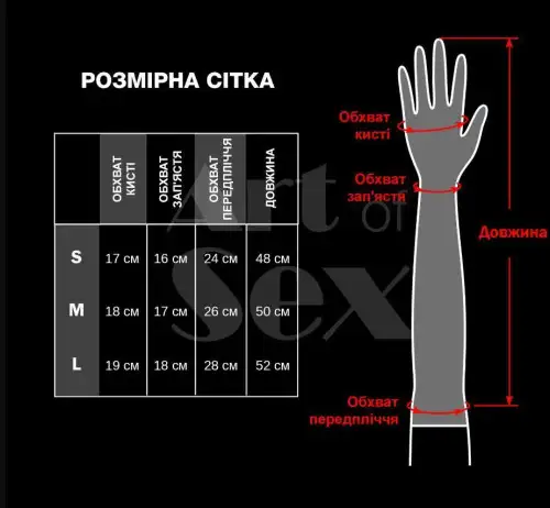 Варежки имеют размер М, который подходит для большинства размеров рук. Их легко надевать и снимать благодаря эластичным манжетам, которые обеспечивают надежную посадку, не создавая ощущения тесноты или ограничения. Гладкая поверхность винилового материала добавляет элемент чувственности, скользя по коже.