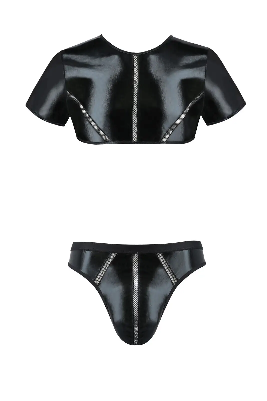 Комплект мужского белья под латекс Passion 057 Set Peter S/M Black, кроп-топ, стринги