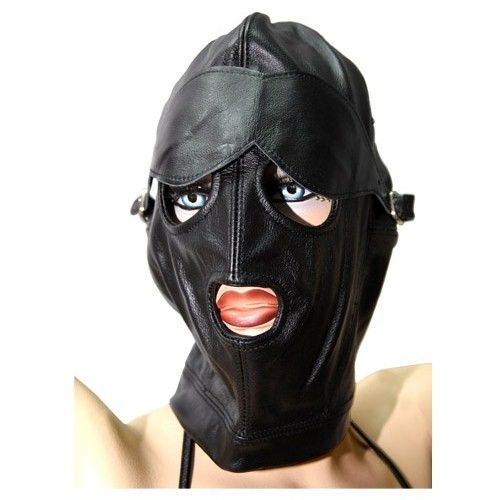 Маска черная - это великолепный аксессуар для создания БДСМ сессий. Маска полностью скрывает голову человека, отсавляя открытыми только глаза и рот. На маске также, имеется кожаная накладка на глаза.
