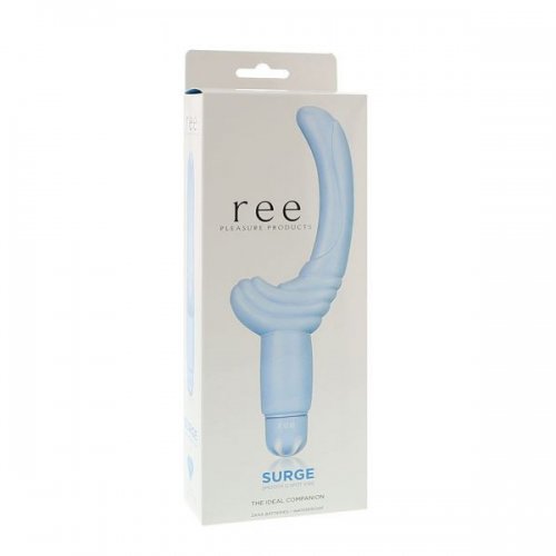 Фаллоимитатор вибромассажер REE Surge, голубой. Материал - ТПР. Длина - 15 см, диаметр - 3 см.