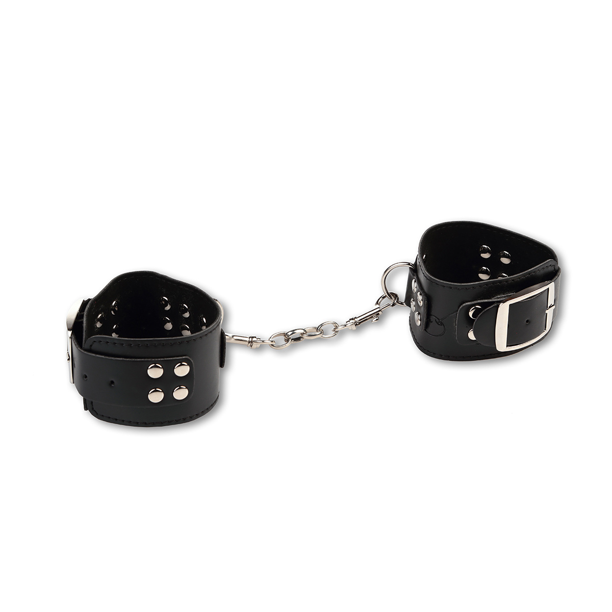 Пришла пора выйти за границы допустимого и вспомнить все варианты использования наручников в сексе, которые только возникали в вас в голове. Пусть это будет легкая прелюдия с женщиной-полицейским или великолепная поза с зафиксированными руками, все это вы воплотите в реальность. Прочные наручники смогут надежно обездвижить вашего партнера, давая вам волю делать с ним, чего душа пожелает. Ведь данный вид БДСМ-игрушки - это первый шаг к грубому и брутальному сексу. Наручники декорированы металлическими заклепками и соединяющей цепочкой.