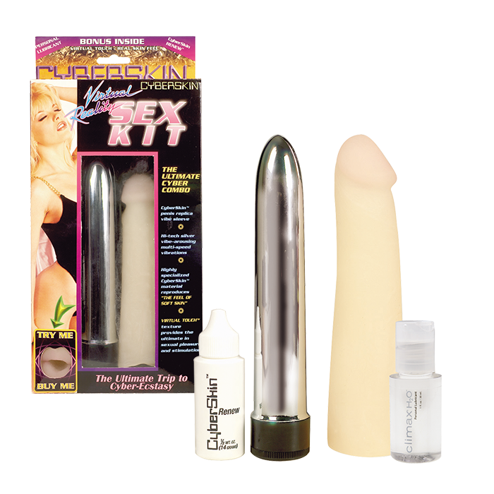 Секс набор VIRTUAL SEX KIT TOPCO состоит из гладкого серебристого вибратора, реалистичной насадки, смазки-лубриканта на водной основе и специального порошка для ухода за киберкожей, батарейки в комплект не входят. Вы можете регулировать интенсивность вибрации с помощью встроенного пульта управления (колесико, находящееся у основания вибратора).