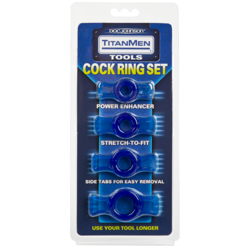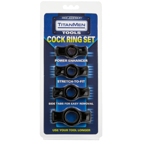 Набор эрекционных колец TitanMen Cock Ring. В комплекте 4 эрекционных кольца разного размера. Материал – TPR. Кольцо подходящего размера поможет поддерживать пенис в состоянии возбуждения довольно продолжительное время. В качестве бонуса оно позволяет продлить  половой акт и подарить партнерше больше удовольствия за счет дополнительной стимуляции.