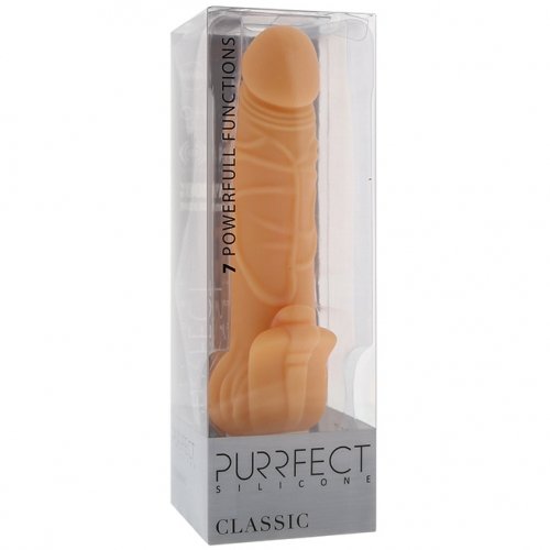 Оригинальный вибратор Purrfect Silicone Classic 7inch - это секрет женского оргазма. Потрясающая реалистичная форма с четкой венозной системой обеспечит вам ощущения не хуже, чем настоящий член, а даже лучше! За счет небольшого клиторального стимулятора и нескольких функций вибрации, вы получите фантастическое наслаждение. Вибратор не водонепроницаемый, но брызгоотталкивающий.