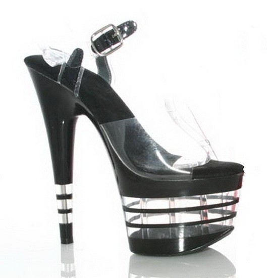 Женские босоножки черного цвета. Высота каблука - 17 см, высота платформы - 7 см.