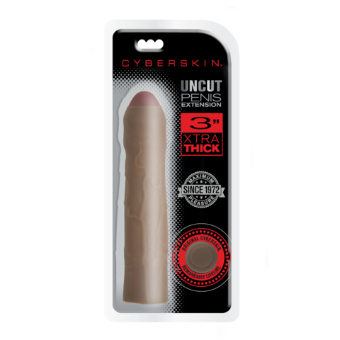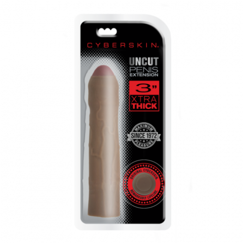 CyberSkin 3 Xtra Thick Uncut Penis Extension + 7,5 см, идеальный способ увеличить длину и обхват вашего пениса! Это реалистичное расширение изготовлено из материала CyberSkin, который на ощупь похож на настоящую кожу и быстро нагревается от тепла тела. Удлинитель добавляет дополнительные 7,5 см в длину и 2,5 см в обхвате, чтобы вы и ваш партнер чувствовали себя более комфортно.
