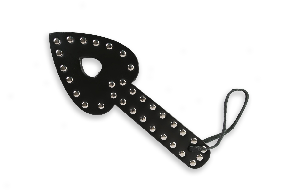 Обожаете грубые ласки или желаете, чтобы вас «наказали»? В этом вам поможет шлепалка с заклёпками. Эротичный, стильный девайс для БДСМ игр сделает вашу сексуальную жизнь пикантной и интересной. Ваш партнер будет в восторге от проделанных над ним экспериментах. Отбросьте свои сомнения и стеснения, а также общественное мнение, наслаждайтесь каждым мгновением вашей близости. Изделие выполнено в виде сердечка с удобной ручкой, где расположена петля для кисти. Она не позволит выронить игрушку в самый неподходящий момент.