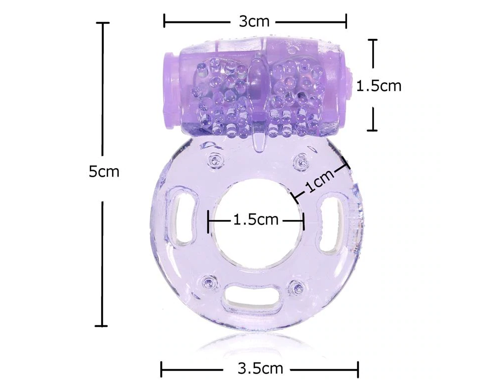 Девайс имеет небольшие габариты (1,5 см на 3,5 см), способствующие приятным ощущениям. Он практически не ощущается на половом органе и не доставляет дискомфорта. Для дополнительной стимуляции члена и мошонки изделие имеет небольшую вибрационную пулю, диаметром 3 см. Вибропуля сможет подарить незабываемые ощущения не только мужчине, женщина тоже достигнет своего пика оргазма. Кольцо-бабочка никогда вас не разочарует, поэтому смело используйте его в сексе и получайте неземное наслаждение.