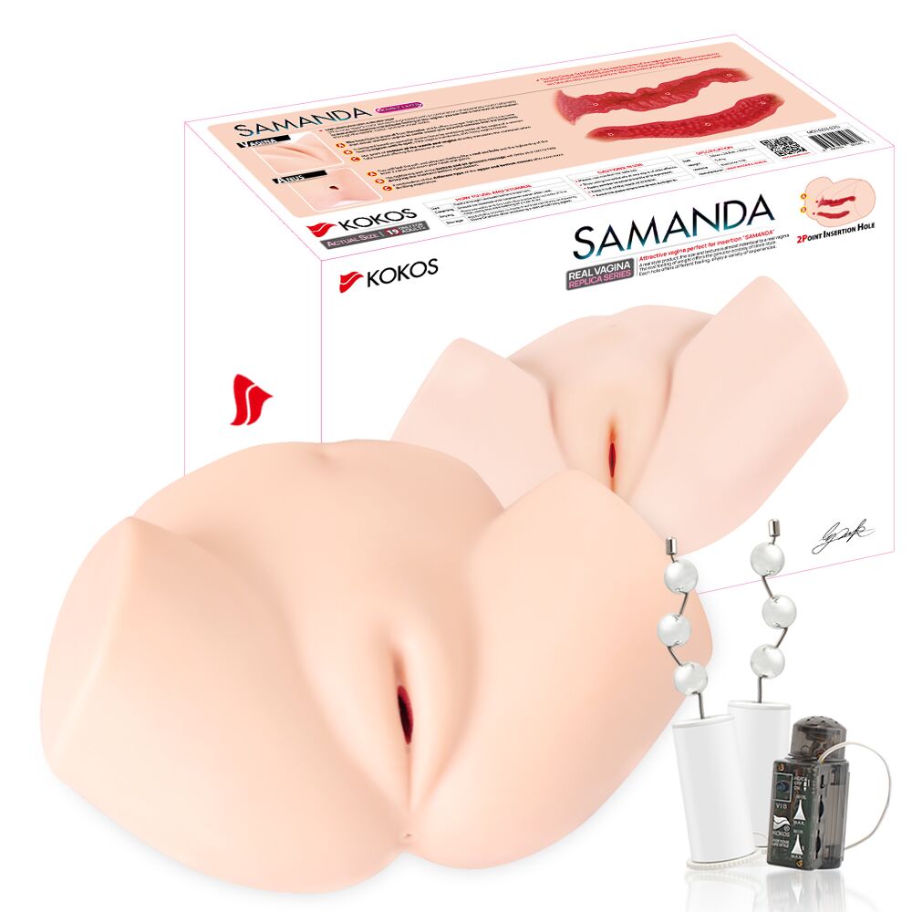 Мастурбатор-полуторс Kokos Samanda 2WayPlus с вибрацией и массажем, два входа: вагина и попка