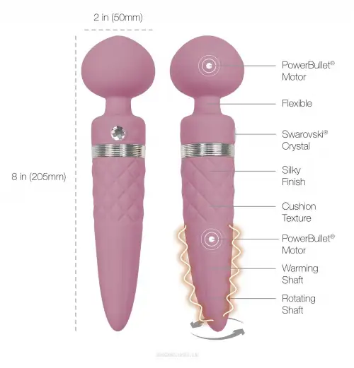 Вибромассажер PILLOW TALK - Sultry с кристаллом Сваровски может похвастаться гладкой приплюснутой головкой и высокой мощностью вибрационных импульсов. Одной из привлекательных особенностей игрушки является конусовидная вставная ручка, которая оборачивается вокруг своей оси, чтоб максимально эффективно стимулировать точку G. Помимо вращающейся ручки, девайс дополнен восхитительной функцией утепления для создания эффекта реалистичности и комфортного использования.