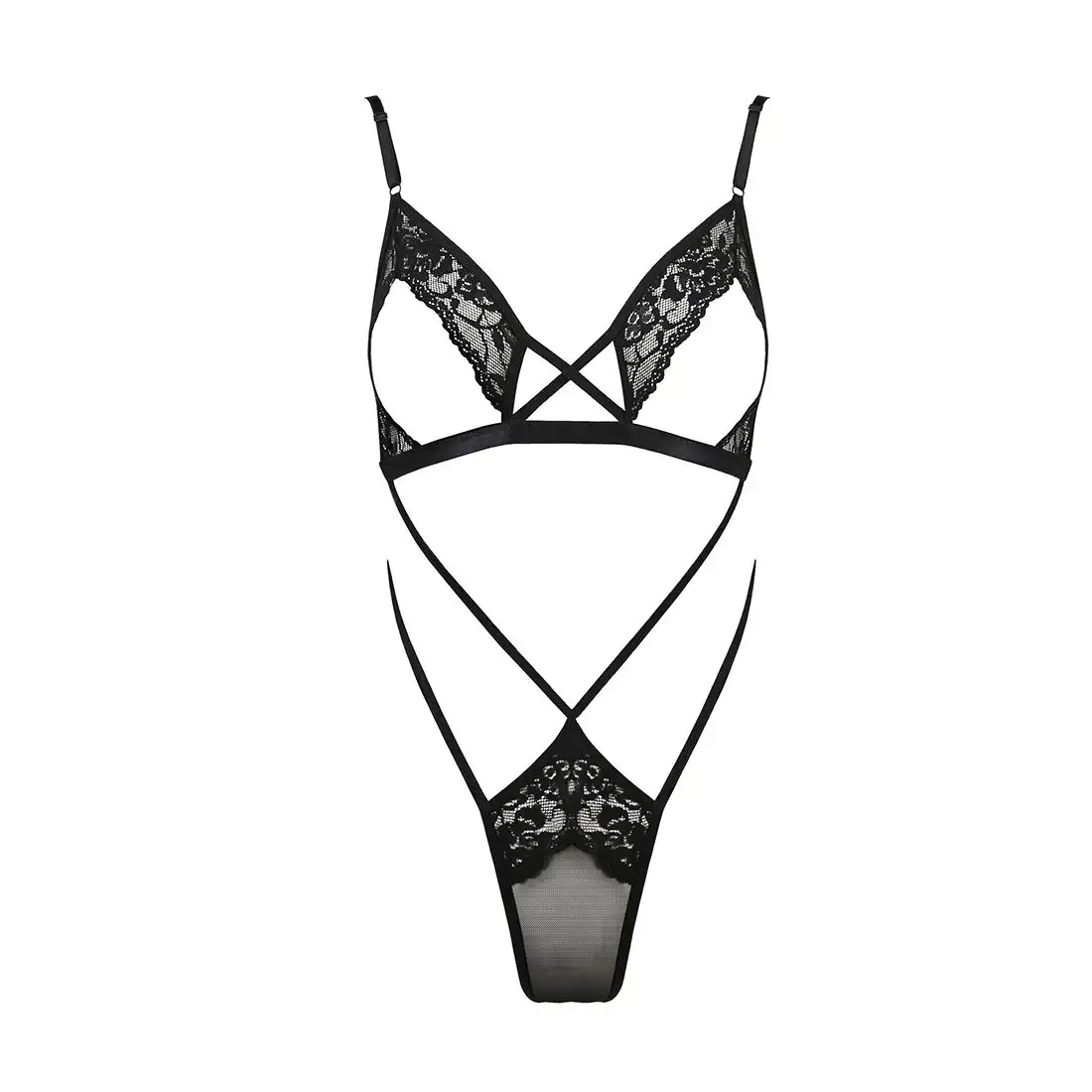 Корпус украшен потрясающим черным кружевом, которое добавляет нотку элегантности и изысканности. Сложные детали кружева создают красивый узор, привлекающий внимание во всех нужных местах. Прозрачная ткань позволяет просвечивать достаточному количеству кожи, оставляя что-то для воображения, оставаясь при этом невероятно соблазнительной.