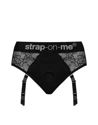 Кружевные трусы для страпона с подвязками для чулок Strap-On-Me DIVA HARNESS - L