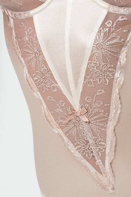 Универсальное нижнее белье - какое оно? Удобное, красивое, сексуальное. Одевая свой тайный наряд, вы должны чувствовать себя желанной, любимой, невероятной Женщиной с большой буквы. Комбидресс Passion LOTUS BODY - это именно то универсальное белье, которое заменит вам ваш ежедневный комплект, сможет стать невидимым под платьем, или превратить вас в горячую соблазнительницу. Польская компания Passion создает гениальные эротические наряды, которые соединяют в себе элегантность, удобство, красоту и качество. Комбидресс LOTUS BODY создан из европейской ткани, которая на 85% состоит из полиамида. Данный материал хорошо пропускает воздух, тем самым позволяет телу дышать. Бежевая плотная ткань, которая сексуально обтягивает тело, скомбинирована с кремовыми кружевными вставками на лифе и животе.